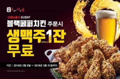 블랙페퍼치킨 주문하면 생맥주 1잔 무료!